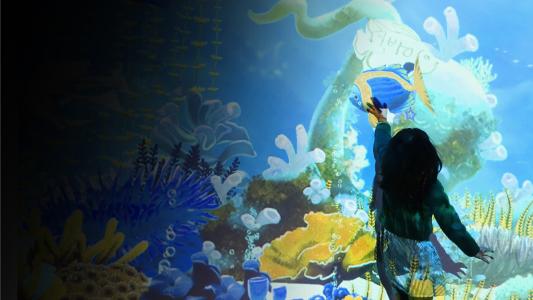 墻面互動投影是一種全新的投影方式,給現代展廳空間帶來了動態游戲樂趣以及生氣和活力。