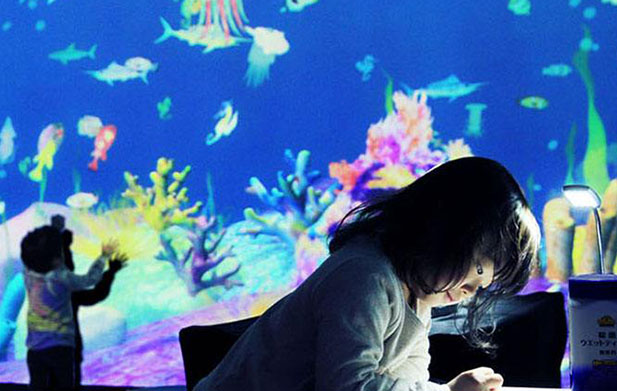 互動涂鴉軟件又稱馬良畫畫,畫畫水族館等,使用AR技術,使用實時視頻運動捕捉技術,圖像識別,壓力傳感器和其他交互技術,投影虛擬現實交互界面,使用色彩科學,圖像處理,人工智能等技術將現場涂鴉繪畫和互動展示結合在一起,吸引玩家參與創作,積極調動觀眾的興趣,將參與者帶入一個結合虛擬世界和真實世界的交互式神奇世界。