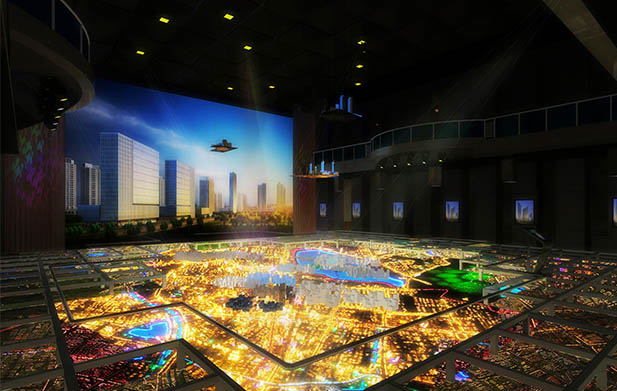 弧幕投影由數字內容,投影系統,播放系統和集成系統,無縫屏幕系統組成,分為120、150、180、360度不同規格,弧幕可與真實場景結合,例如模型沙表播放。弧幕投影的大畫面,立體聲和清晰的畫質可以為觀眾帶來一流的體驗和沉浸感。觀眾與畫面和諧一致,這就是弧幕投影的魅力。